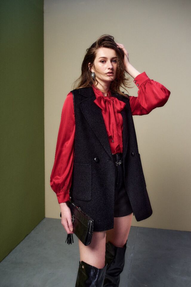 毛料翻領背心