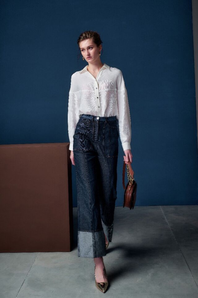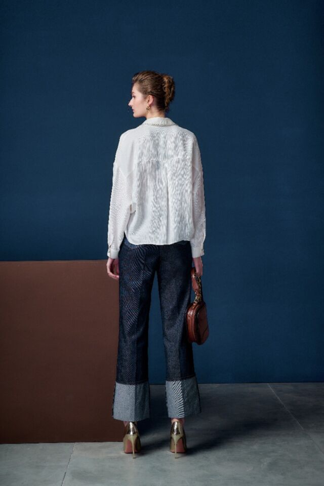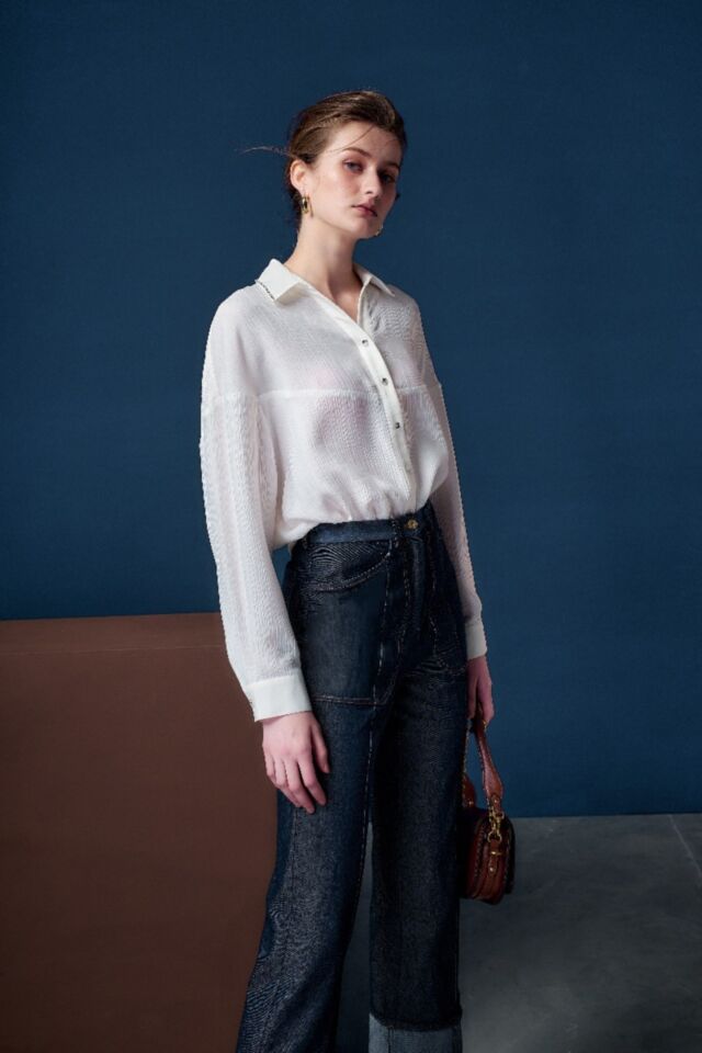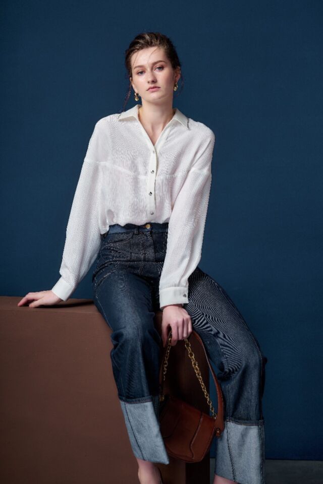 凹凸紋理感的清爽面料, 剪接線和精緻的釦飾, 簡約卻不簡單的鬆弛短版廓型, 慵懶百搭