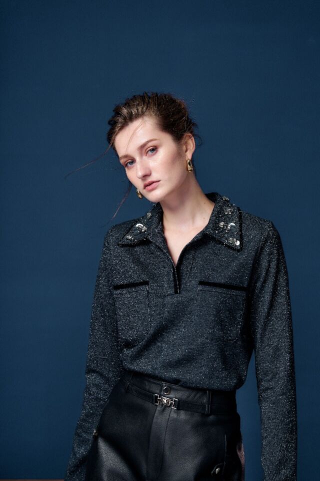 POLO衫式的版型, 以鑽飾點綴的領子, 貴氣之餘, 簡約百搭