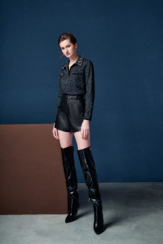 璀璨閃亮的混紡面料, 以植絨工藝細節呈現. 休閒又奢華