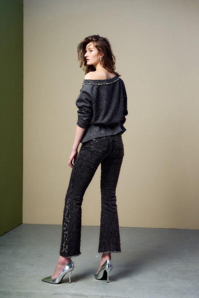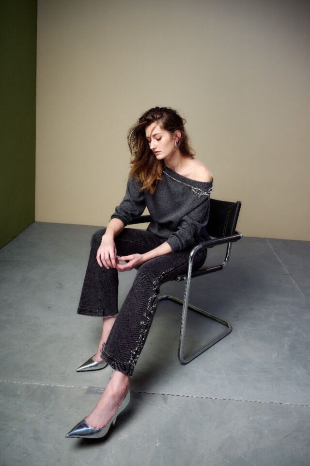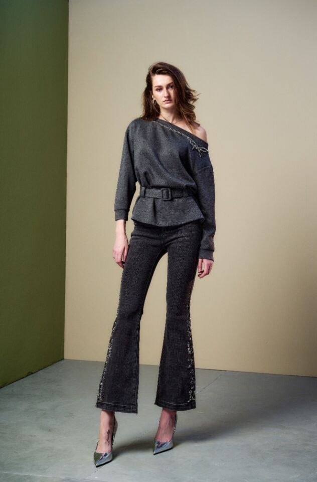 合身的喇叭廓型, 不規則的鑽飾細節自帶華麗感, 顯瘦更富女人味