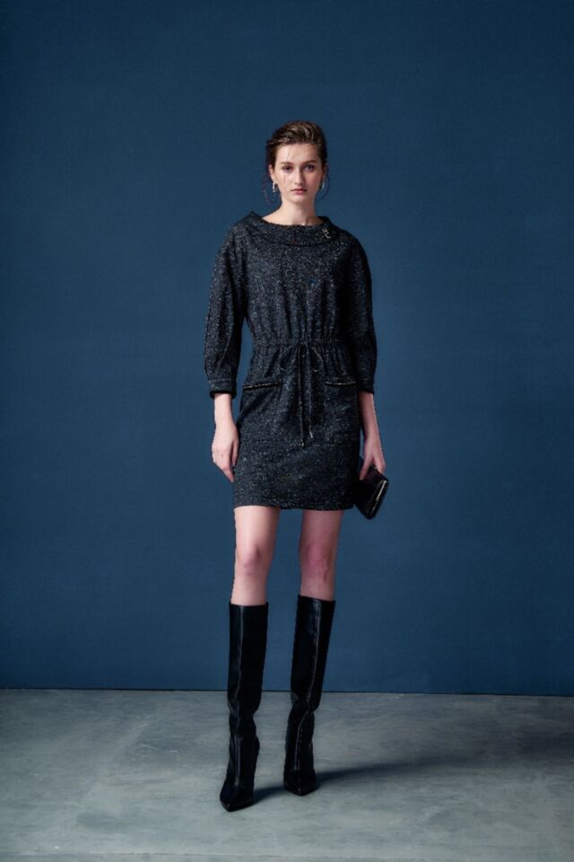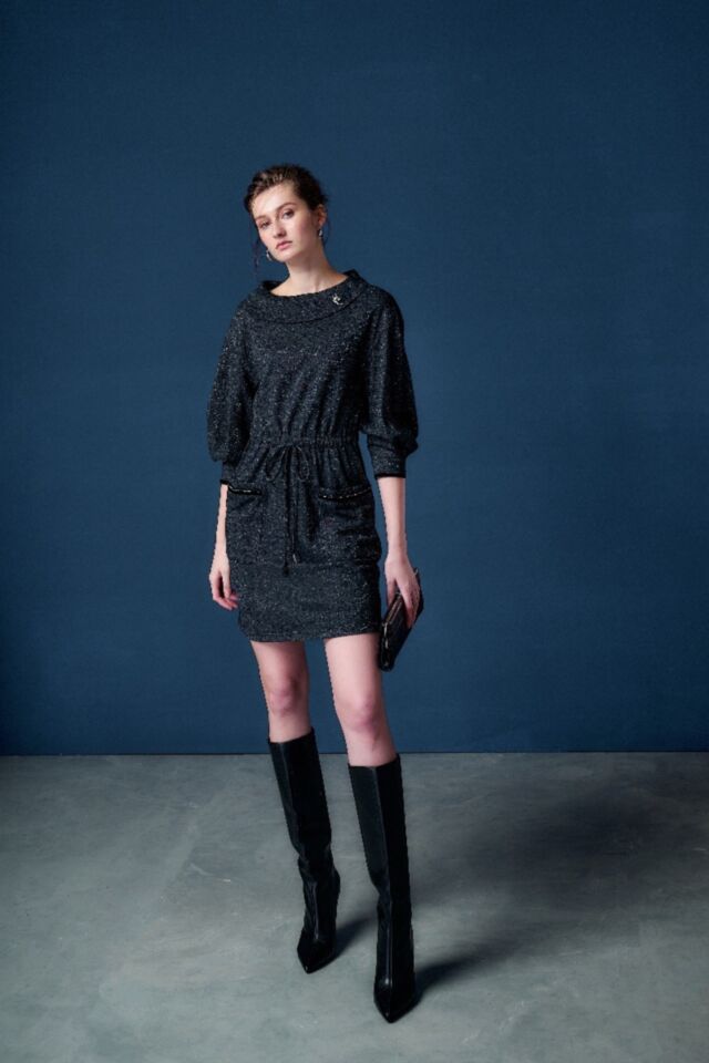 璀璨閃亮的混紡面料, 以植絨工藝細節呈現. 休閒又奢華