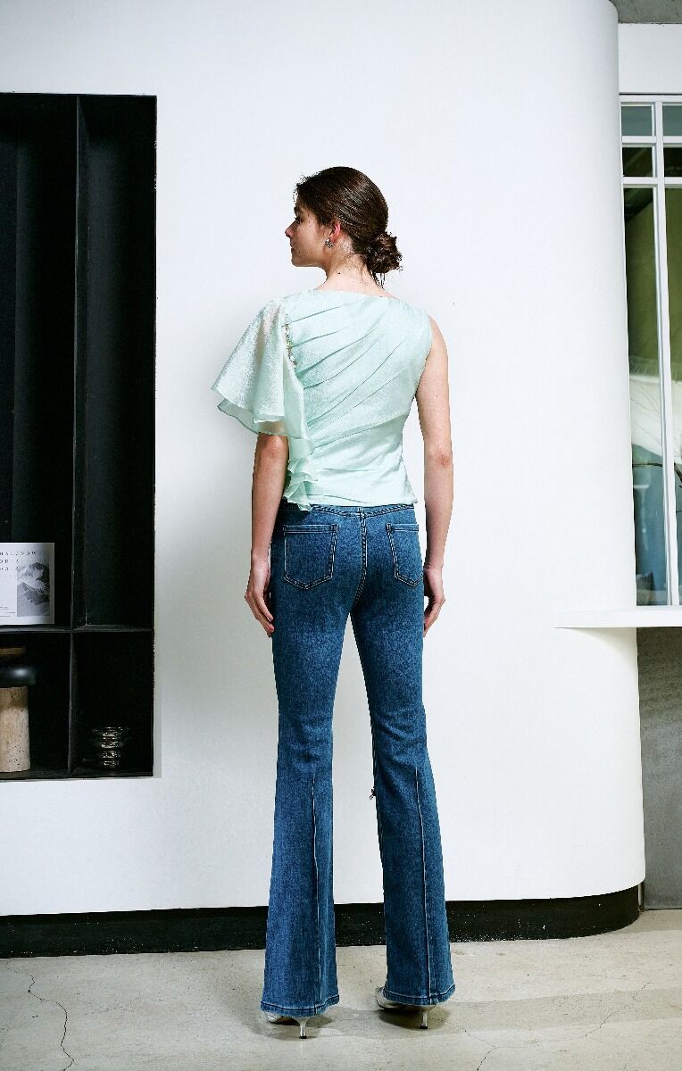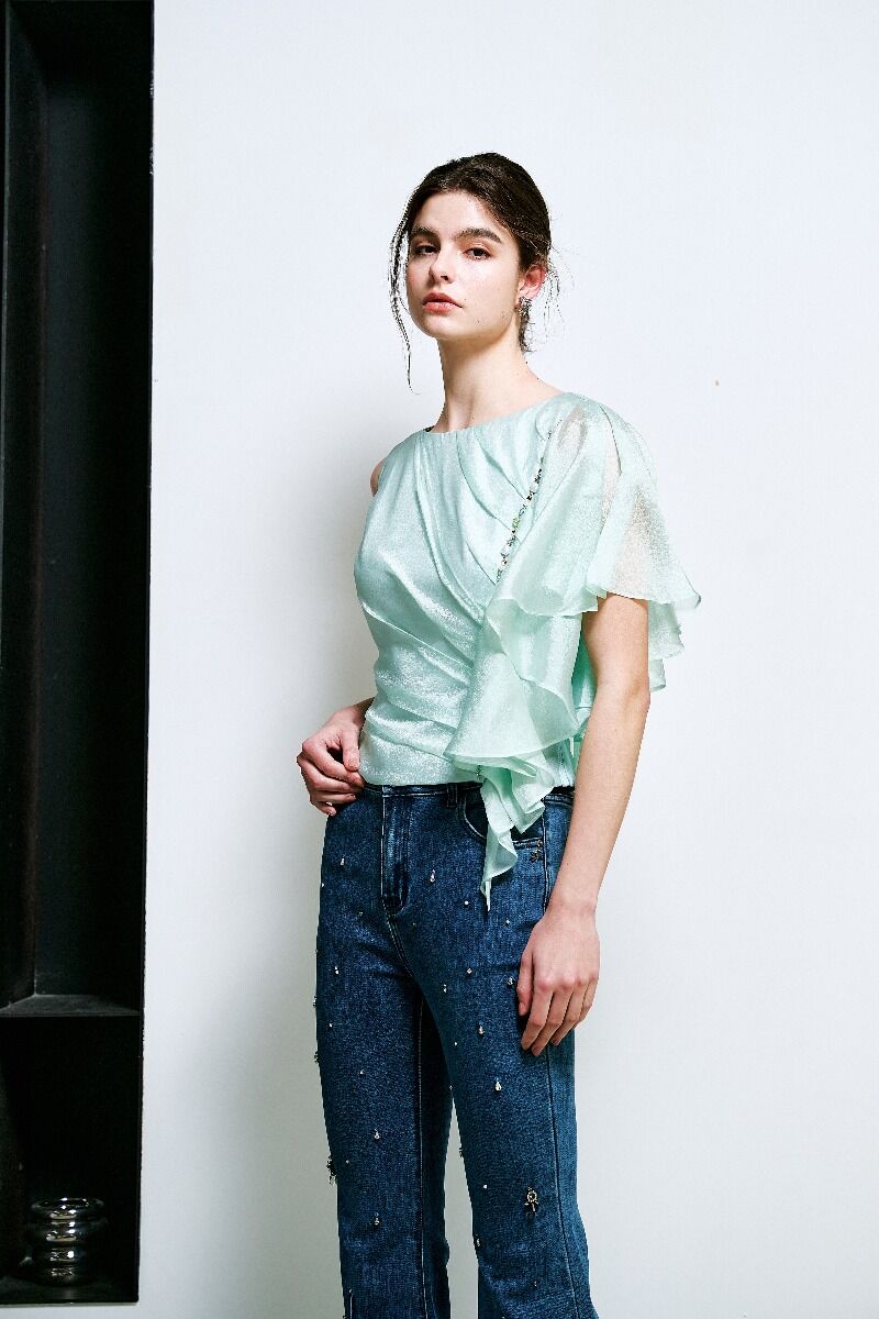 不對稱打褶上衣