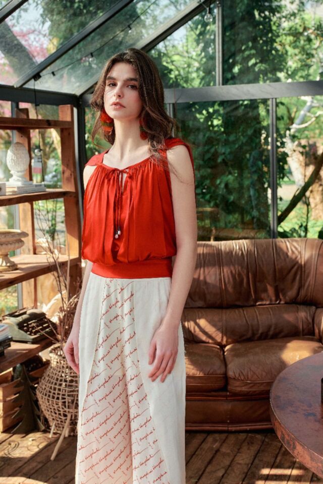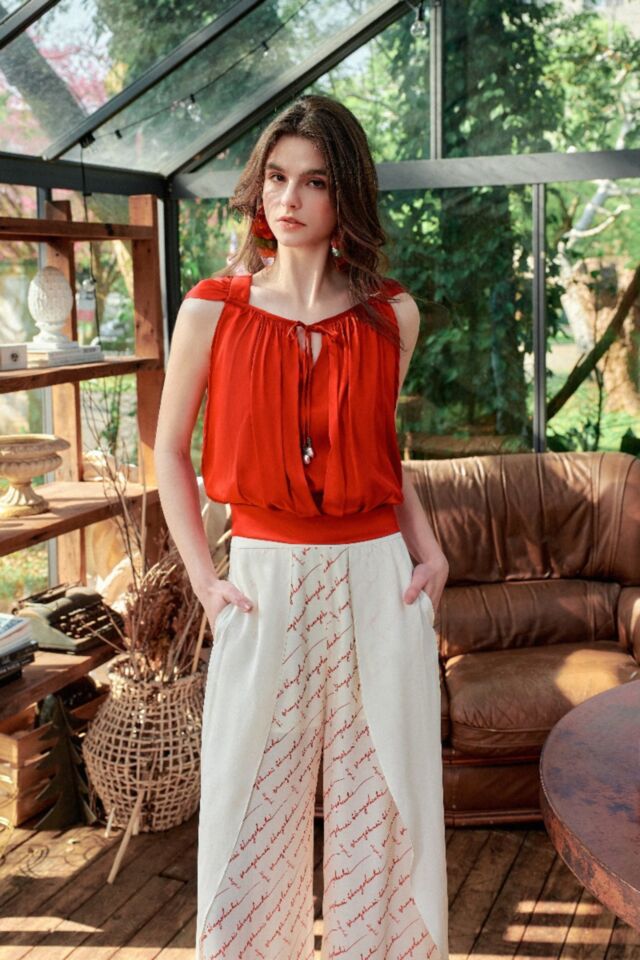 大領設計搭配墜飾綁帶, 結合蓬鬆的下擺收口, 打造優雅的燈籠廓型