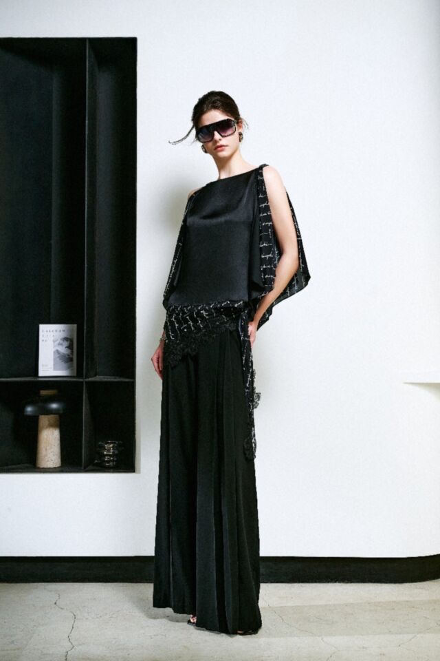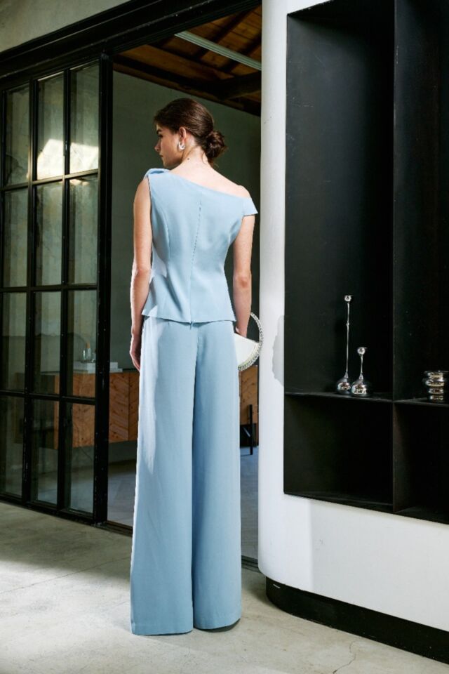 垂墜感的闊腿剪裁, 以金屬釦腰帶設計點綴, 打造出走路帶風的慵懶高級感