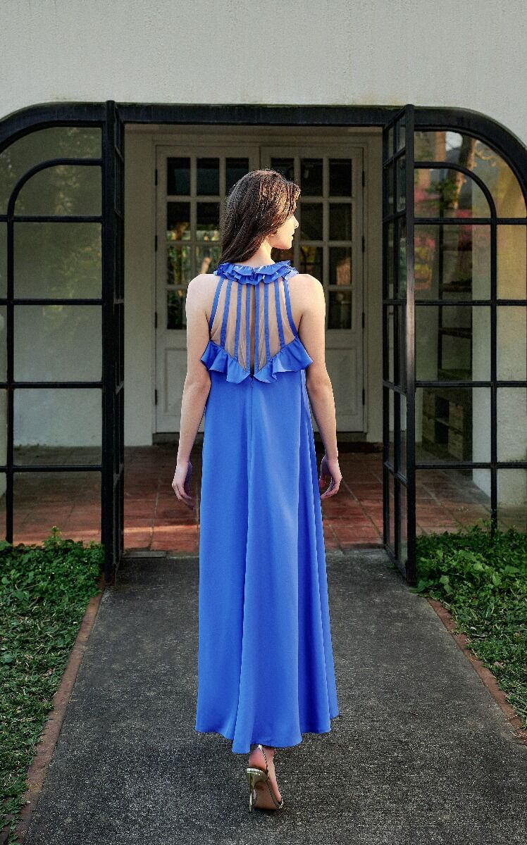 荷葉交疊層次, 如花瓣綻放的靈動感, 削肩綁帶設計平衡輕盈與柔美與成熟, 慵懶又知性